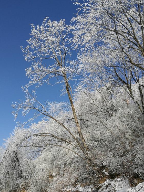 受較強(qiáng)冷空氣影響,秦嶺腹地涼風(fēng)埡山頂,出現(xiàn)大面積霧凇景觀。玉樹(shù)瓊枝,晶瑩剔透,讓涼風(fēng)埡山頂變得像童話世界一般,美不勝收。 央視記者王志杰 圖片來(lái)源:央視新聞微博