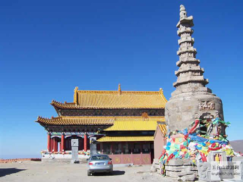五臺(tái)山中臺(tái)翠巖峰,又名平頂山,海拔2894米,居?xùn)|、西、南、北四臺(tái)的中心,也是四臺(tái)的發(fā)脈之祖,臺(tái)頂面積也最大?!肚鍥錾街尽吩疲骸皫p巒雄曠,翠靄浮空”。其山勢(shì)酷似一頭挺立的雄獅。臺(tái)頂寺院名作演教寺,內(nèi)供孺童文殊。