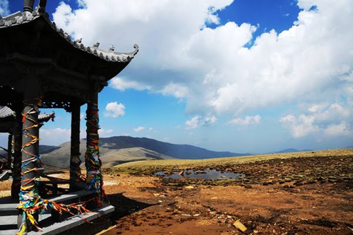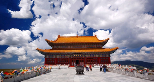 夏日的中臺(tái)頂青綠如黛,碧如翡翠,猶似一堆巨大的祖母綠。游人走累了,躺在細(xì)若絲絨、猶若天然地毯的青草上,面向天空,感覺天藍(lán)藍(lán)的,云柔柔的,風(fēng)輕輕的,特別清爽。飄動(dòng)著的白云,千變?nèi)f化地追蹤著人們的足跡,還癡癡地纏繞在身前身后,讓人如置身仙境,美妙異常。