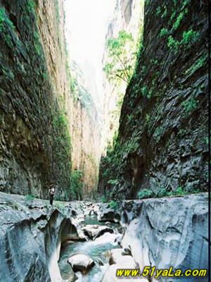 走出龍泉峽,第三個峽谷是王莽峽。游王莽峽,不能不到十八盤。十八盤是唐朝時人們?yōu)榱藴贤ㄉ宵h和中原地區(qū)的文化商業(yè)交流而在懸崖峭壁上人工開鑿的。清代它被洪水沖跨,康熙年間人們捐資重新修建了古棧道,共砌了一千三百個臺階,如今已被蔭林公路所取代,它現(xiàn)在只是十八盤一個重要的風景旅游點。