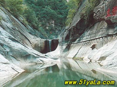 在陡峭絕壁上開鑿的古棧道旁,有一座被稱為仙人橋的石筑橋梁,它曾為溝通晉豫兩地的經(jīng)濟、文化交流立下了不小的功勞。仙人橋建于明朝,長五十米,高二十五米,結構嚴謹,堅固樸實。相傳當時曾有晉、冀、魯、豫、秦五省十八府、九十六縣的民眾參與修建。離仙人橋不遠處,連接著一座堅實的橋梁,跨過這座橋和相連的山洞,就進入了龍泉峽。