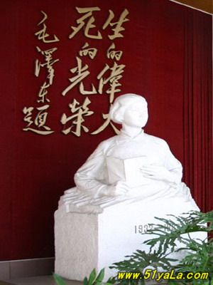 劉胡蘭(1930-1947),中國共產(chǎn)黨黨員,1946年參加革命,1947年山西軍閥閻錫山的軍隊(duì)突然襲擊時(shí)被捕,英勇不屈,在敵人鍘刀下壯烈犧牲。毛澤東曾在當(dāng)時(shí)《晉綏日?qǐng)?bào)》上為之題詞:“生的偉大,死的光榮?!?/p>