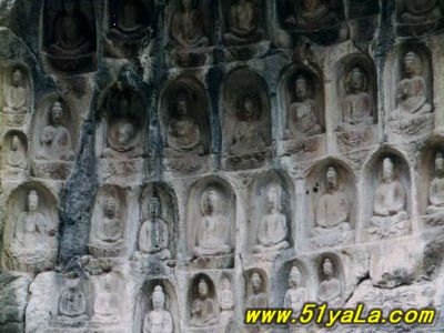 千佛崖在山西霍縣南7.5公里郭莊村山腰。山巒聳峙,山花爛漫,摩崖造像隱現(xiàn)其間。始刻于唐代,宋、元時(shí)屢有造鑿,直至明正德五年(1501年)始結(jié)束。本尊大佛高約8米,下部刻有唐貞觀以及天寶五年(公元746年)、長慶二年(822年)等題記。千手千眼觀音像高約2米,為元代所造。其余小佛多為三軀一組(一佛二菩薩或一佛二弟子),亦有單佛一龕者,刻工精湛,造型生動(dòng),極富民間特色。