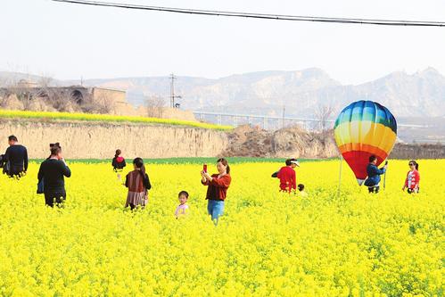 3月28日,運城市鹽湖區(qū)三路里鎮(zhèn)桃花盛開,油菜花綻放,層層梯田美不勝收,處處美景醉游人。