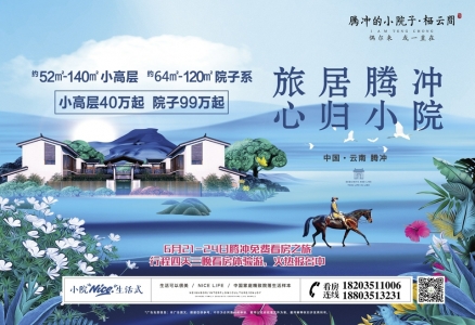 騰沖的小院子,是實力文旅繼大理的小院子之后書寫的嶄新篇章。正如其名,騰沖的小院子坐落于騰沖市西山壩新區(qū),倚山觀云海,俯瞰全城繁華風景。小院子規(guī)劃共約700余畝,擁有極具騰越風情的合院、獨院、洋房、聯(lián)排、小高層等產(chǎn)品。