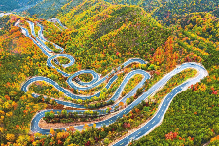 10月17日拍攝的左權縣太行龍泉風景區(qū)景色。太行一號旅游公路北天池段,似長龍盤旋在五彩斑斕的太行秋色之中,峰回路轉,風景秀麗,繪成一幅絕美的天然畫卷,帶領游客開啟詩意之旅。