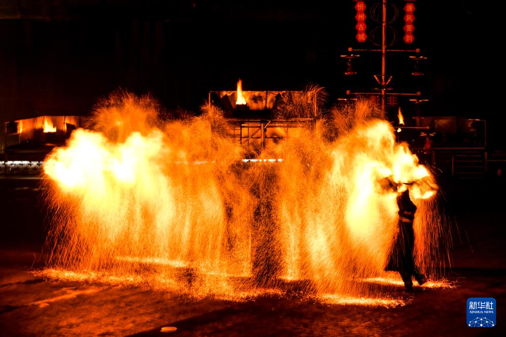 這是10月23日拍攝的忻州古城內(nèi)的“火壺”表演。