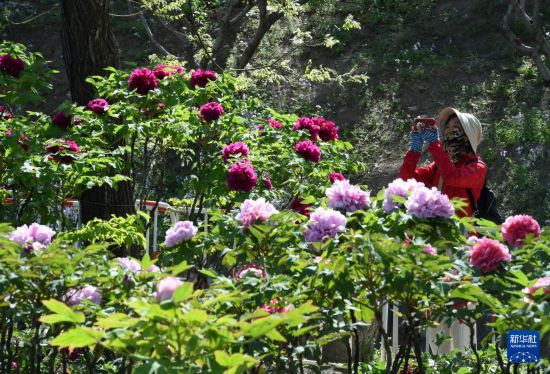4月20日,游客在圓明園拍攝盛開(kāi)的牡丹。