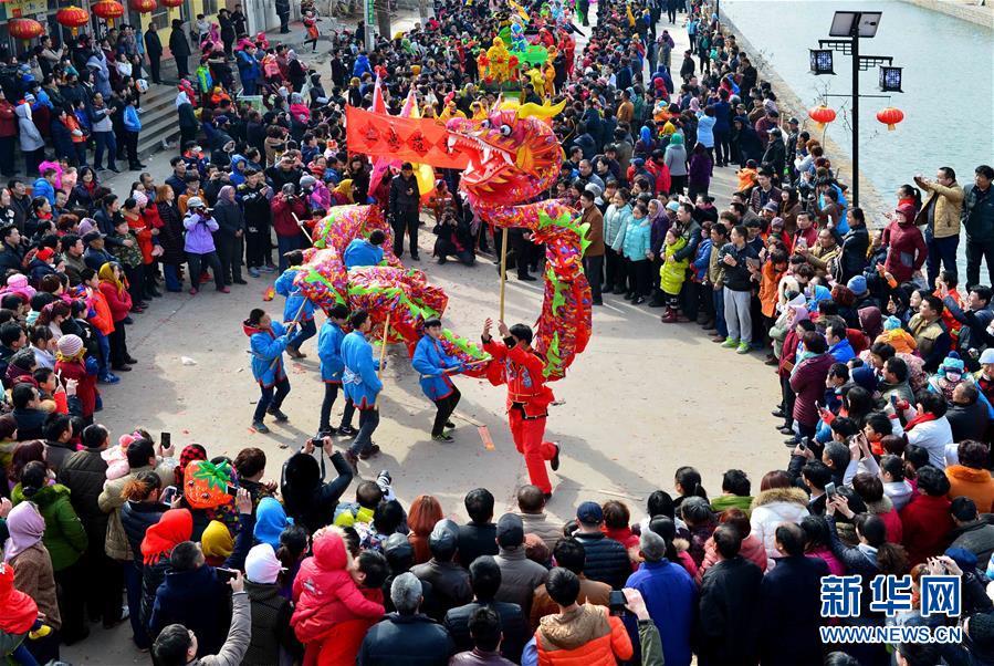 2月21日,社火隊(duì)在進(jìn)行巡游拜年。當(dāng)日,有著千年歷史的傳統(tǒng)村落——山東省章丘市三德范村組織31個(gè)社火隊(duì)舉行社火巡游拜年活動,在元宵佳節(jié)來臨之際為鄉(xiāng)親們送祝福。新華社記者 郭緒雷攝