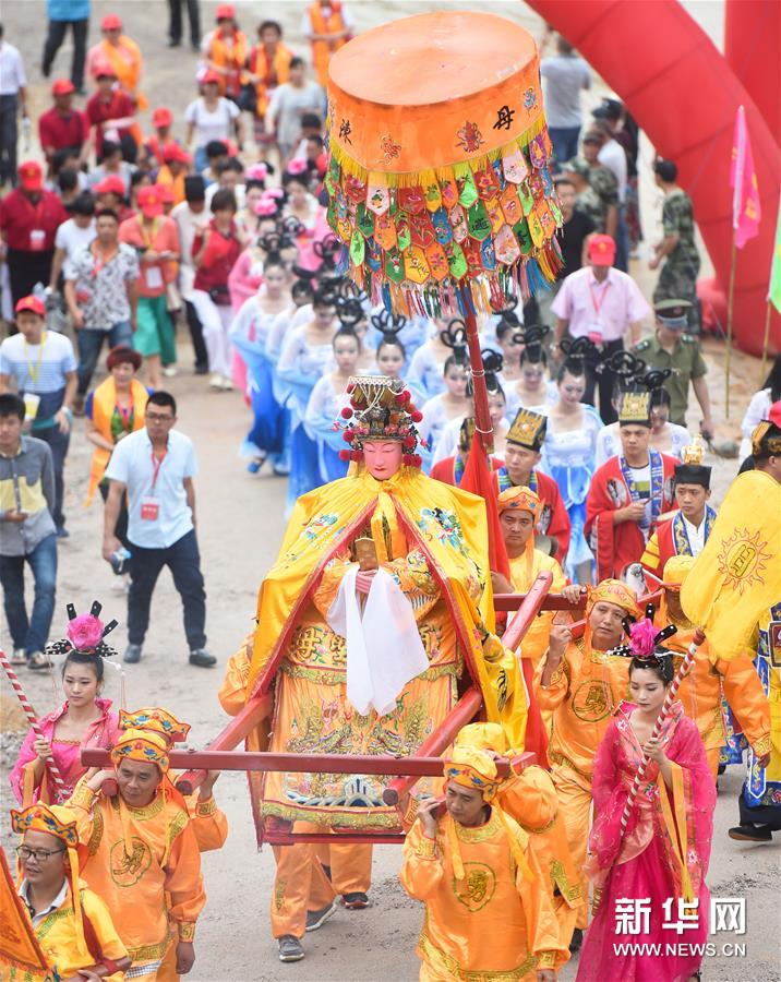 6月13日,福建省寧德市古田縣舉行臨水夫人祭祀大典,為海峽論壇的重要組成部分——陳靖姑文化節(jié)拉開序幕。本屆文化節(jié)以“臨水緣·兩岸情”為主題,港澳臺(tái)及內(nèi)地近千名信眾共同參加。作為國家級(jí)非物質(zhì)文化遺產(chǎn)“陳靖姑信俗文化”的發(fā)祥地,福建省古田縣充分以陳靖姑信俗文化為紐帶,通過不斷加深對(duì)外文化交流與合作,對(duì)推動(dòng)兩岸關(guān)系和平發(fā)展、我國與海絲沿線國家民間交流起到了積極作用。陳靖姑被譽(yù)為“婦女兒童保護(hù)神”,在世界各地信眾已逾億人。新華社記者 宋為偉 攝