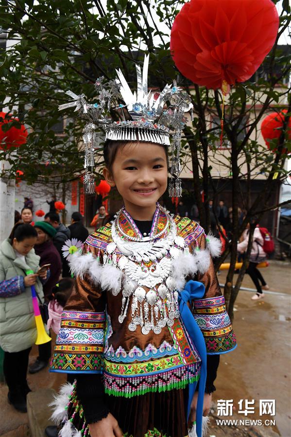 2月7日,廣西融水苗族自治縣安太鄉(xiāng)苗族群眾開展傳統(tǒng)的“打同年”民俗活動。當?shù)財?shù)百名苗族同胞與游客們歡聚一堂,一起開展對歌、蘆笙踩堂、文藝晚會等活動,歡慶新春佳節(jié)。 “打同年”是融水苗族村寨的一種民俗,即友好村寨之間的拜年聯(lián)歡活動。新華社記者 李斌 攝