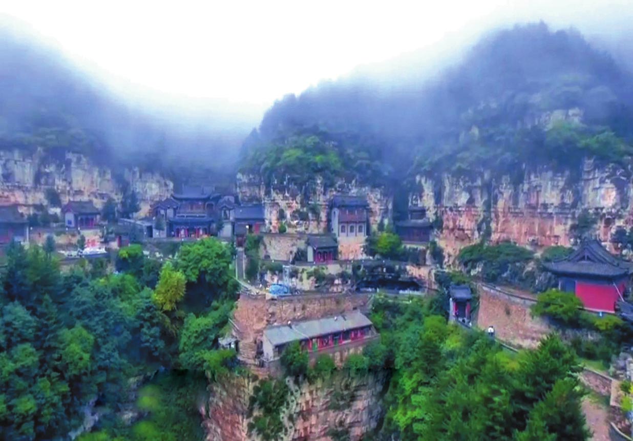 《代州志》記載,趙杲觀創(chuàng)建于北魏時(shí)期,歷代均有修葺擴(kuò)建。其北洞是主體建筑部分,現(xiàn)存建筑物為明代重修,可分北洞與南洞兩大群落。北洞以道教為主,南洞以佛教為主。其中最有特色的兩處要算是北洞的“五層樓”和“三間閣”了。趙杲觀東側(cè)迎面山壁上,自然形成了龐大的三角形石縫,內(nèi)有天然石洞,景觀奇特。石縫上端,外建五層樓閣。依崖開(kāi)鑿石洞,梁架結(jié)構(gòu)與崖石交接構(gòu)筑,建造精巧。三間閣內(nèi)設(shè)有鐵索,扶鐵索可攀援而上。箭閣外塑趙杲泥像,頭頂距石崖僅二指半,故舊稱“趙杲觀,離天二指半”。再往南,就是趙杲觀最險(xiǎn)峻的景觀了。