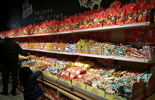 春節(jié)臨近,顧客在超市選購(gòu)糖果年貨/人民網(wǎng)記者崔元苑攝