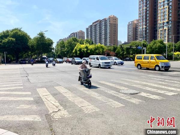 圖為石家莊街頭,頂著烈日出門的市民穿著防曬服,戴著遮陽(yáng)帽。李曉偉 攝