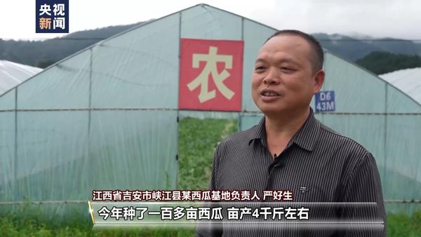 江西省吉安市峽江縣某西瓜基地負(fù)責(zé)人 嚴(yán)好生:今年種了一百多畝西瓜,畝產(chǎn)4千斤左右,預(yù)計(jì)總產(chǎn)值在40萬(wàn)以上。