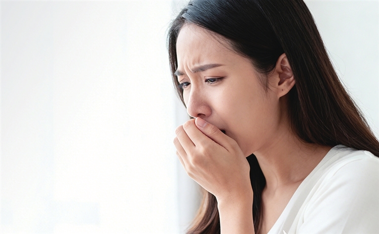 第二種常見類型,是上呼吸道感染后咳嗽。很多人感冒痊愈后,鼻塞、發(fā)燒等癥狀消失了,但咳嗽卻一直遷延不愈,多為陣發(fā)性干咳,偶爾有少量黏痰,可能伴隨喉嚨異物感,說話多、受涼后會(huì)加重。這是因?yàn)楦忻皶r(shí)呼吸道黏膜受到損傷,即使病毒、細(xì)菌被清除,黏膜的修復(fù)也需要時(shí)間,在此期間會(huì)持續(xù)處于敏感狀態(tài),容易引發(fā)咳嗽。