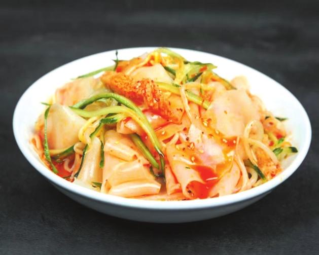 剛進(jìn)入伏天,氣溫飆升到近40℃。一天中午時(shí)分,大壯老爸從工地下班,帶回來一大張從街角買的涼皮,將涼皮切成手指粗細(xì),加入麻醬、香醋、辣椒油,就著大蒜,父子倆哐哐炫了好幾碗。