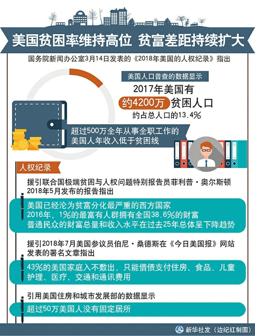 國務(wù)院新聞辦公室14日發(fā)表《2018年美國的人權(quán)紀(jì)錄》《2018年美國侵犯人權(quán)事記》,對美國侵犯人權(quán)的狀況進(jìn)行揭露。
