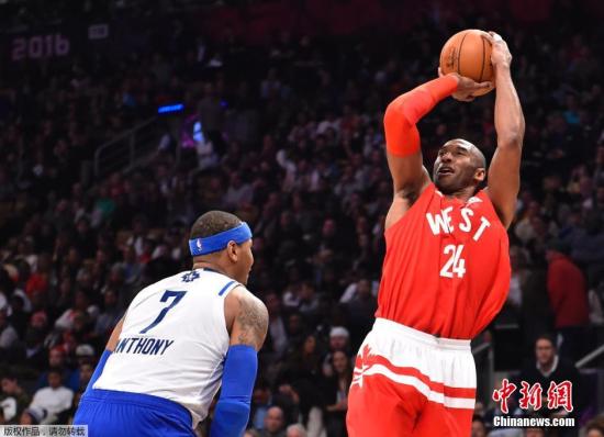 2月15日,2016NBA全明星正賽在多倫多開打,科比·布萊恩特的最后一次全明星賽以勝利而結(jié)束,西部以196-173大勝東部,西部創(chuàng)下了全明星賽得分紀(jì)錄,兩隊(duì)總得分也刷新了去年創(chuàng)下的紀(jì)錄。圖為科比跳投。