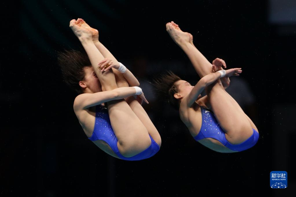 6月30日,陳芋汐(左)/全紅嬋在比賽中。當(dāng)日,在匈牙利布達(dá)佩斯舉行的2022年世界游泳錦標(biāo)賽跳水項目女子雙人10米臺決賽中,中國選手陳芋汐/全紅嬋奪得冠軍。新華社記者 鄭煥松 攝
