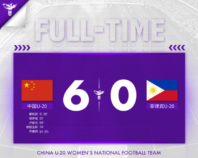 本場(chǎng)中國(guó)隊(duì)完全掌控了局面。霍悅欣在上半場(chǎng)打進(jìn)兩球,鄒夢(mèng)瑤也打進(jìn)一球。下半場(chǎng)比賽,盧家玉、歐陽(yáng)玉環(huán)和喬睿琪各入一球,幫助中國(guó)隊(duì)輕松取勝。