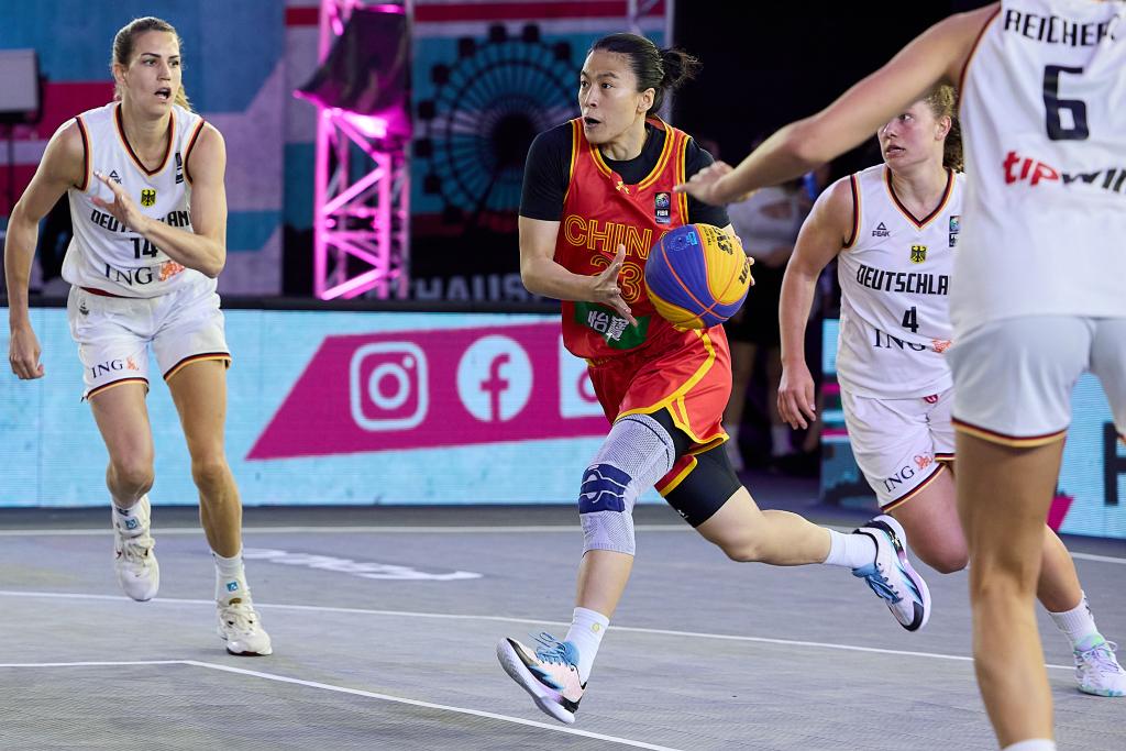 6月3日,中國隊球員王麗麗(中)在2023國際籃聯(lián)三人籃球世界杯女子組四分之一決賽中突破。新華社發(fā)(喬治斯·施耐德攝)