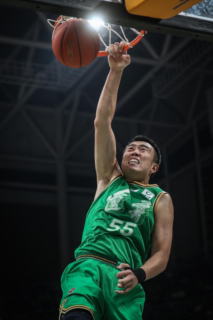 11月15日,遼寧隊(duì)球員韓德君在比賽中扣籃。新華社記者 潘昱龍 攝
