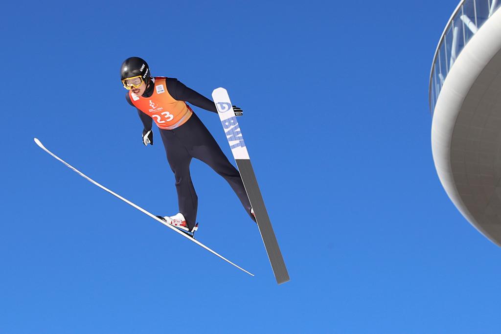 在北京冬奧會(huì)上實(shí)現(xiàn)中國(guó)北歐兩項(xiàng)“冬奧首秀”的趙嘉文,在一眾國(guó)內(nèi)頂尖選手中依然足夠閃光。幾場(chǎng)比賽中,他的跳臺(tái)成績(jī)遠(yuǎn)遠(yuǎn)甩開其他選手,越野滑雪也能躋身前列,“一跳一滑”綜合能力出眾。