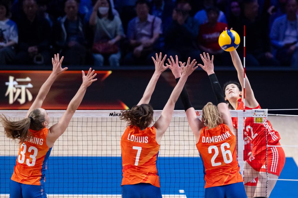 首局比賽中國隊(duì)失誤較多,荷蘭隊(duì)取得13:6的領(lǐng)先。中國隊(duì)請求暫停后迅速調(diào)整狀態(tài),一度將分差縮小至3分,但最終還是以21:25告負(fù)。第二局,中國隊(duì)在開局落后的情況下依靠多點(diǎn)進(jìn)攻在后半段反超比分,以25:23扳平大比分。士氣大振的中國女排在接下來的比賽中掌握了主動(dòng),進(jìn)攻更加積極,以25:23、25:21連下兩局贏得勝利。