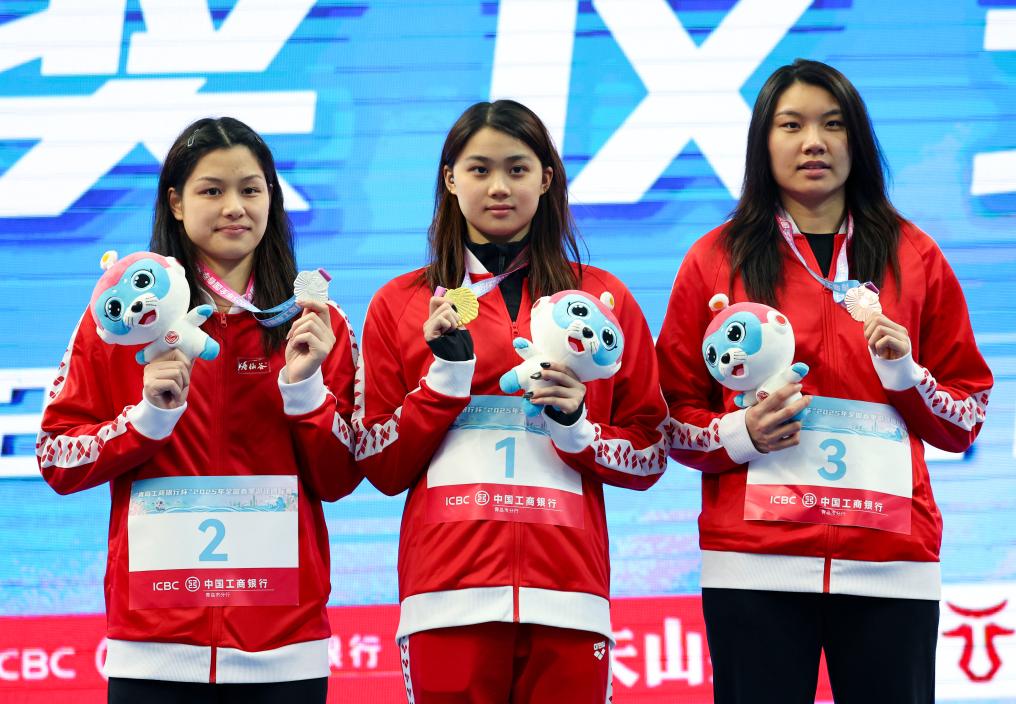 在女子100米自由泳比賽中,江西隊選手程玉潔奪冠,成績是53秒91,余依婷和柳雅欣分列第二、三位。
