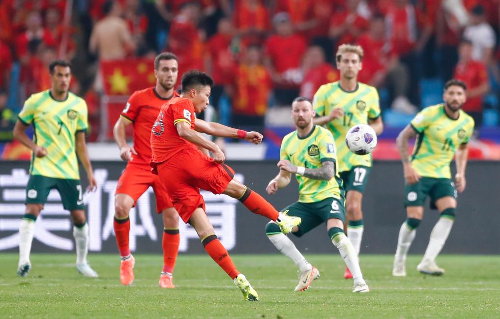 本場比賽,杭州奧體中心體育場涌入了超7萬名球迷,不過現(xiàn)場巨大的聲浪并沒能給國足帶來好運。第16分鐘,澳大利亞隊杰克遜·歐文得球后殺入禁區(qū),黃政宇在防守時不慎滑倒,前者起腳兜射破門,中國隊0:1落后。