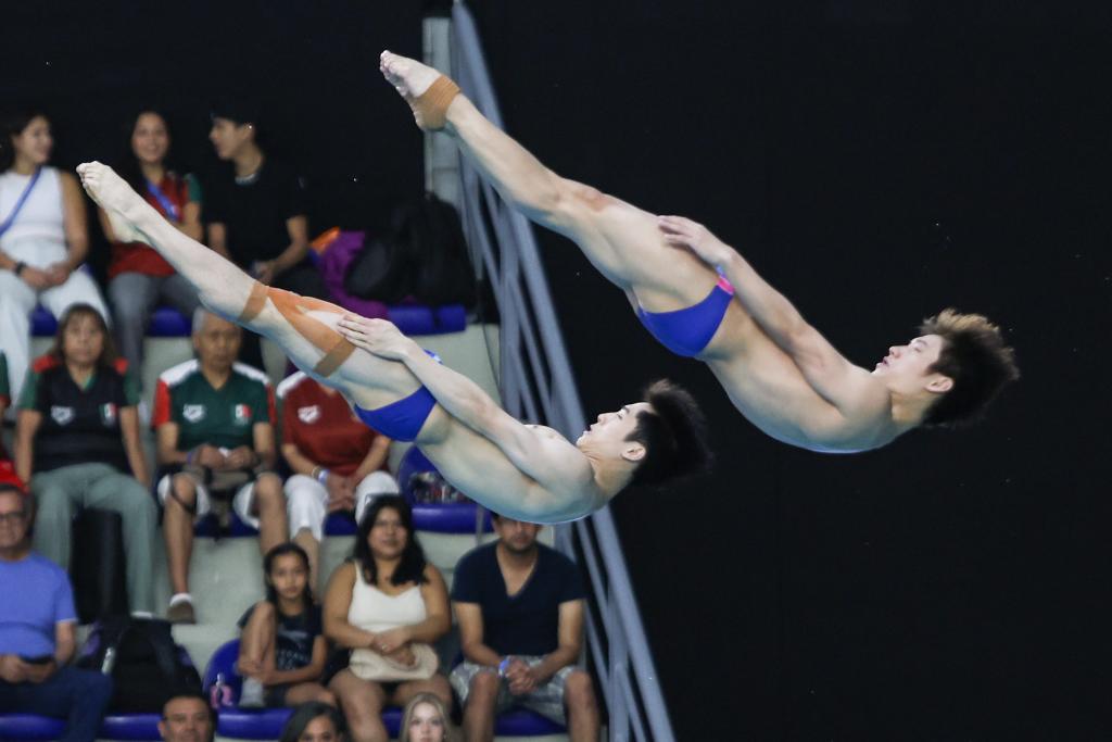 當日率先進行的男子雙人三米板決賽中,巴黎奧運會該項目亞軍獲得者、墨西哥組合奧斯馬爾/塞拉亞·埃爾南德斯以430.23分為東道主拿下在本站比賽的首金。中國組合胡宇康/鄭九源和英國組合拉夫爾/哈丁分列二、三名。