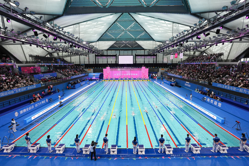 11月10日,參賽選手在女子400米自由泳預(yù)賽中。當(dāng)日,第十五屆全國運(yùn)動(dòng)會(huì)游泳項(xiàng)目在深圳拉開帷幕。新華社記者 夏一方 攝