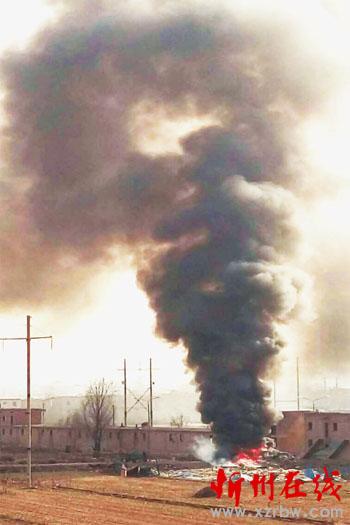 忻府區(qū)樊野村村北,路東廢棄的一排小二樓后面,村民焚燒垃圾,黑煙滿天,空氣中彌散著嗆人的氣味,從6日下午三、四點(diǎn)一直燒到晚上。這樣集中焚燒垃圾對(duì)周?chē)h(huán)境造成很大污染,望有關(guān)單位進(jìn)行監(jiān)管。(一網(wǎng)友攝于3月6日晚七點(diǎn))
