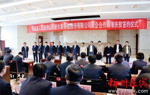 圖為岢嵐與山西新大象養(yǎng)殖股份有限公司政企合作精準(zhǔn)扶貧簽約儀式現(xiàn)場(chǎng)。(尹艷 攝)