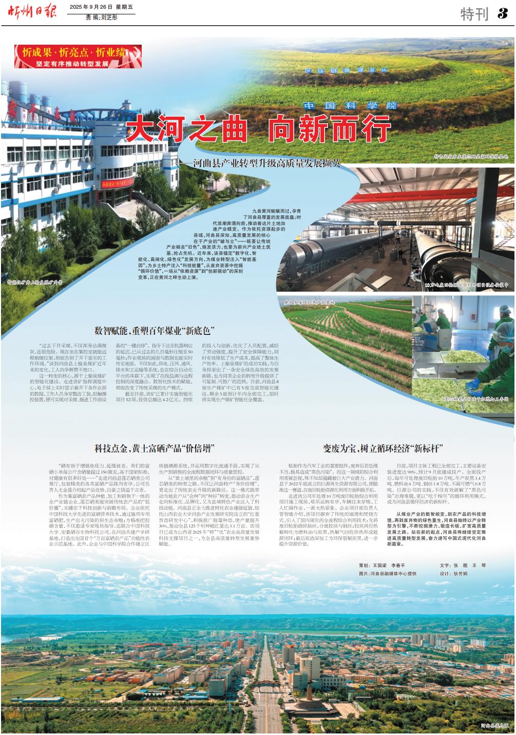 從煤業(yè)產(chǎn)業(yè)的數(shù)智蛻變,到農(nóng)產(chǎn)品的科技增值,再到廢棄物的綠色重生,河曲縣始終以產(chǎn)業(yè)轉(zhuǎn)型為引擎,不斷挖掘潛力、鍛造長板,擴寬高質(zhì)量發(fā)展之路。站在新的起點,河曲縣將繼續(xù)堅定推進高質(zhì)量轉(zhuǎn)型發(fā)展,奮力譜寫中國式現(xiàn)代化河曲新篇章。