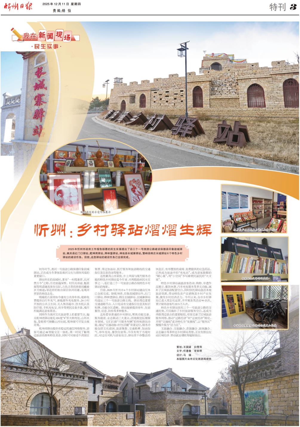 2025年忻州市政府工作報(bào)告部署的民生實(shí)事提出了沿三個(gè)一號(hào)旅游公路建設(shè)保德縣印象故城驛站,偏關(guān)縣紅門口驛站、乾坤灣驛站、樺林堡驛站,神池縣長(zhǎng)城寨驛站,繁峙縣韓莊長(zhǎng)城驛站6個(gè)特色鄉(xiāng)村驛站的建設(shè)任務(wù)。目前,這些驛站的建設(shè)任務(wù)已全部完成。