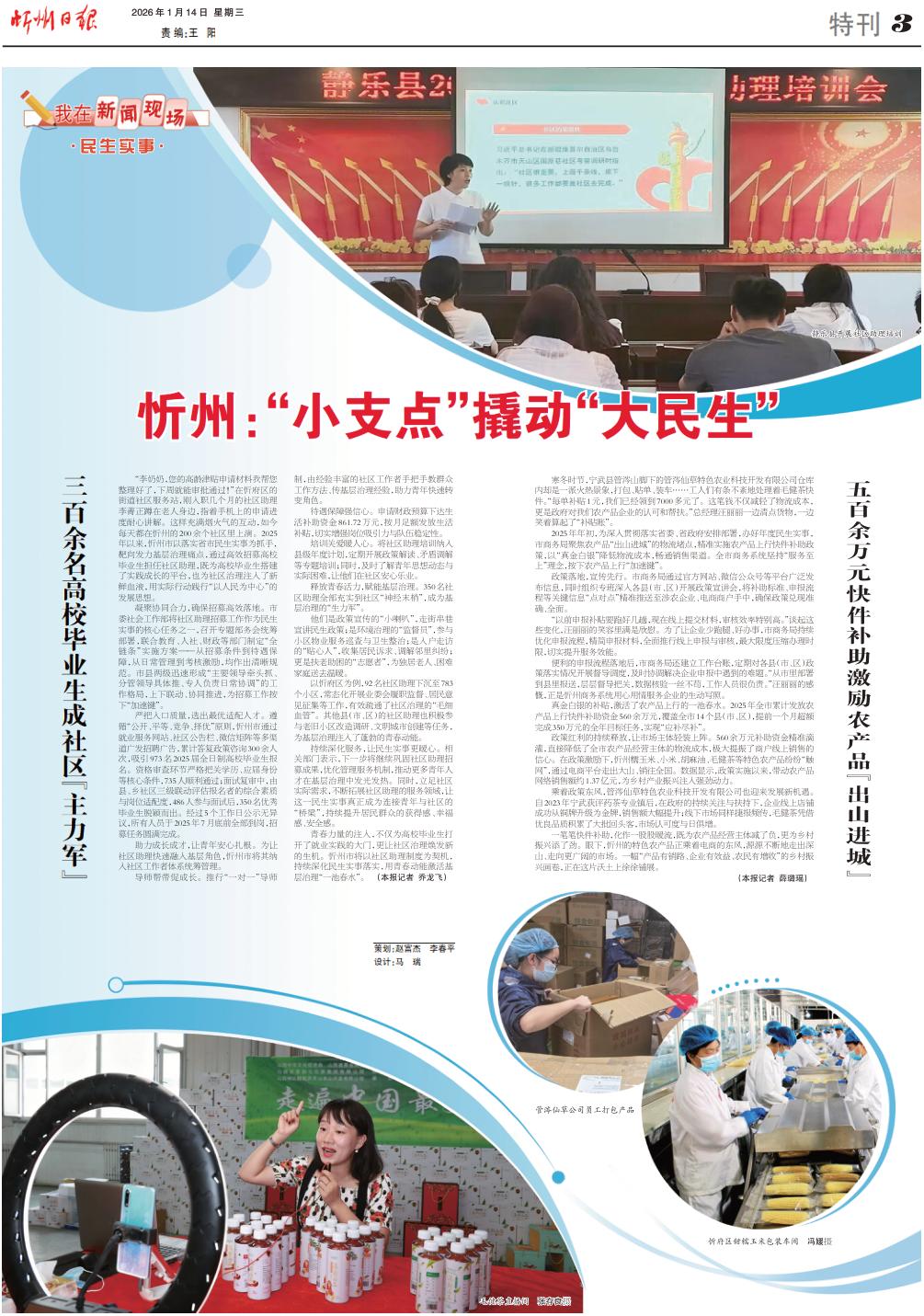 “李奶奶,您的高齡津貼申請(qǐng)材料我?guī)湍砗昧耍轮芫湍軐徟ㄟ^!”在忻府區(qū)的街道社區(qū)服務(wù)站,剛?cè)肼殠讉€(gè)月的社區(qū)助理李菁正蹲在老人身邊,指著手機(jī)上的申請(qǐng)進(jìn)度耐心講解。這樣充滿煙火氣的互動(dòng),如今每天都在忻州的200余個(gè)社區(qū)里上演。2025年以來,忻州市以落實(shí)省市民生實(shí)事為抓手,靶向發(fā)力基層治理痛點(diǎn),通過高效招募高校畢業(yè)生擔(dān)任社區(qū)助理,既為高校畢業(yè)生搭建了實(shí)踐成長(zhǎng)的平臺(tái),也為社區(qū)治理注入了新鮮血液,用實(shí)際行動(dòng)踐行“以人民為中心”的發(fā)展思想。