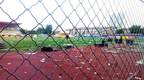 6月18日晚,市體育場在舉辦完一場音樂盛會(huì)后,現(xiàn)場一片狼藉,垃圾滿地。臟亂的場面給工作人員帶來很大工作量,希望市民還是要多愛護(hù)公共場所環(huán)境衛(wèi)生。(網(wǎng)友:藍(lán)天碧水 攝)