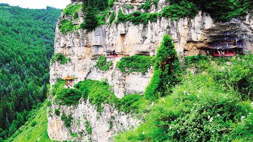在天然形成的垂直巖壁上,古人鑿通了長達42華里的棧道,有的地方有一人高,有的地方必須伏下身爬過去,在兩山之間,還有長長的吊橋連接。