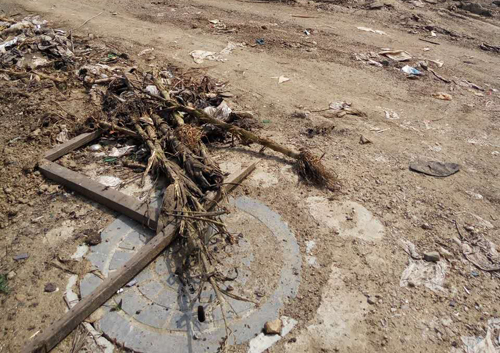一位村民指著西面被垃圾包圍的一個鐵皮焊接成的小門說:“這就是我們?nèi)迦顺运乃畯木锍槌?,通過管道送往距此地約300多米的蓄水池,然后在供給各家各戶,這是我們?nèi)逦ㄒ坏某运??!?/p>