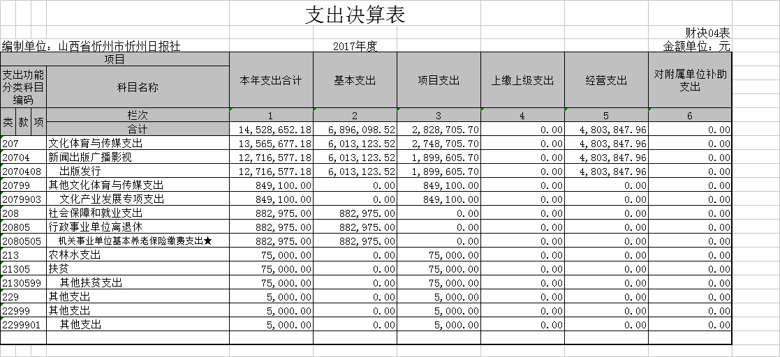 忻州日?qǐng)?bào)社是一級(jí)預(yù)算單位,無下屬單位。部門決算只有一個(gè)單位,即忻州日?qǐng)?bào)社。