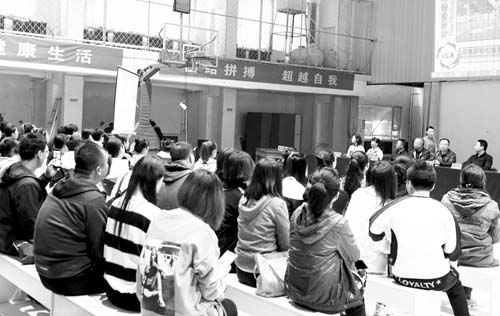 目前,在全國啦啦操委員會和各省市啦啦操委員會共同努力下,全國已有二十幾個省市的五百余個培訓班先后開班,已經(jīng)有兩萬名啦啦操愛好者獲得啦啦操教練員、裁判員證書。我市也借此東風再次組織啦啦操喜愛者參加了這次培訓班。本報記者陳泉生攝影報道
