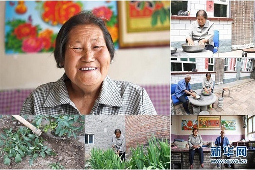 張桂香,女,1949年出生,山西省長(zhǎng)治市沁源縣西務(wù)村人。2015年,她因病被納入建檔立卡貧困戶。在當(dāng)?shù)卣婉v村工作隊(duì)調(diào)查研究后,張桂香家得以享受光伏扶貧收益資金,丈夫趙九勝也被聘用為護(hù)林員。2018年,他們家年收入超過(guò)了8000元。 左上:張桂香肖像;右上:張桂香在家里洗菜;右中:張桂香(右)和老伴趙九勝在家里洗菜;下右:張桂香(左)和老伴趙九勝在家里合影;下中、下左:張桂香在家門(mén)口的菜地里干活(拼版照片,6月20日攝)。 地處晉東南的山西省長(zhǎng)治市,位于由太行山、太岳山環(huán)繞而成的上黨盆地中。在群山中、崖壁上,許多村莊自然條件惡劣,基礎(chǔ)設(shè)施落后,脫貧致富是大山深處人們的迫切心愿。 近年來(lái),一場(chǎng)場(chǎng)脫貧攻堅(jiān)戰(zhàn),在一個(gè)個(gè)深山村打響。政府全力探索脫貧路徑的同時(shí),山區(qū)百姓因地制宜,靠自己的雙手和智慧走上致富路,交出了一份扎實(shí)的脫貧答卷。 記者在太行山、太岳山一路尋訪,記錄下多位70歲老人的生活。這些共和國(guó)的同齡人,親歷了山鄉(xiāng)的巨變,見(jiàn)證著長(zhǎng)治山區(qū)脫貧攻堅(jiān)偉大工程的一步步推進(jìn)。 新華社記者 楊晨光 攝