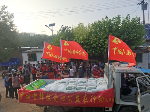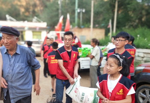 在發(fā)放現(xiàn)場,受災群眾感受到了志愿者的關(guān)愛,看在眼里,暖在心里,整個村里呈現(xiàn)出一片溫馨快樂的氛圍。
