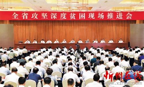 山西日報(bào)訊(記者尚慧輝)6月19日,省委在忻州召開全省攻堅(jiān)深度貧困現(xiàn)場推進(jìn)會,也是省委中心組擴(kuò)大的專題學(xué)習(xí)會。會議以習(xí)近平扶貧思想為指導(dǎo),分析一年來全省攻堅(jiān)深度貧困形勢,堅(jiān)持目標(biāo)和問題導(dǎo)向,激勵干部更好擔(dān)當(dāng)作為,強(qiáng)化精準(zhǔn)用力舉措,下足繡花功夫,為堅(jiān)決打贏脫貧攻堅(jiān)戰(zhàn)奠定扎實(shí)基礎(chǔ)。省委書記駱惠寧出席會議并講話,他強(qiáng)調(diào),要認(rèn)真學(xué)習(xí)貫徹習(xí)近平總書記對打贏脫貧攻堅(jiān)戰(zhàn)三年行動的重要指示,按照中央指導(dǎo)意見及省委部署,咬定總攻目標(biāo),落細(xì)攻擊點(diǎn)位,完善督戰(zhàn)機(jī)制,奪取戰(zhàn)役全勝。打贏三年脫貧攻堅(jiān)戰(zhàn),必須牢牢抓住主要矛盾、聚焦深度貧困,做到焦點(diǎn)不散、靶心不變,持續(xù)用力、盡銳出戰(zhàn),以攻堅(jiān)深度貧困帶動面上扶貧工作。國務(wù)院扶貧開發(fā)領(lǐng)導(dǎo)小組副組長、國務(wù)院扶貧辦主任劉永富出席會議并講話。省委副書記、省長樓陽生主持會議。