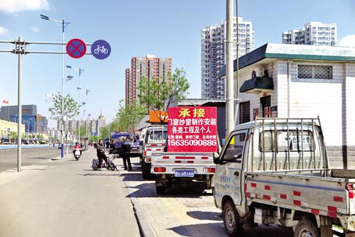 近日,記者在我市城區(qū)云中北路(原陶瓷廠附近)看到,近一百米的人行道上被出租貨運車占了個滿滿當當,行人被擠到了機動車道上,存在安全隱患。希望相關(guān)部門加大對此路段的管治力度,還市民一個安全、暢通的出行環(huán)境。圖為停在人行道上的出租貨運車 張志遠 攝