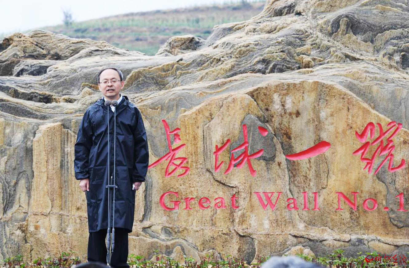 老牛灣長城一號旅游公路“0Km”標志文化驛站啟用活動現(xiàn)場。劉紀森 攝