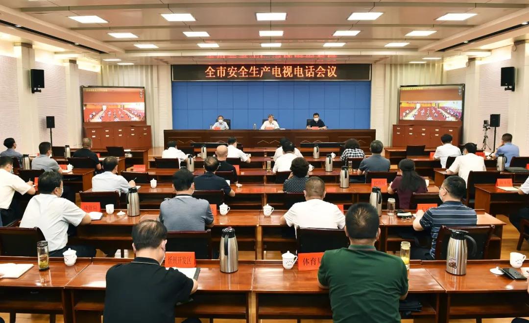 會議會場。馮曉磊 攝 本報訊 (記者任逢春)6月17日,市長朱曉東主持召開全市安全生產(chǎn)電視電話會議,貫徹落實全國、全省安全生產(chǎn)電視電話會議精神,深刻剖析反思、沉痛汲取代縣“6·10”透水事故教訓,對進一步做好全市安全生產(chǎn)工作提出了明確要求和具體任務。副市長耿鵬鵬、袁小波在市主會場出席,各縣(市、區(qū))設分會場。 會議向代縣大紅才鐵礦4號礦洞透水事故中的遇難礦工表示哀悼。強調(diào)事故帶來的警醒是長久的,留下的反思是沉痛的,必須痛定思痛、吸取教訓,在警覺中反思、在反思中提升。各級各部門要充分認識當前安全生產(chǎn)復雜和嚴峻的形勢,樹牢“人民至上、生命至上”的理念,進一步增強狠抓安全生產(chǎn)工作的責任心和緊迫感,把安全穩(wěn)定作為當前壓倒一切的大事,深入落實“543”工作機制,持續(xù)不斷地預防風險和消除隱患,一點一滴扎扎實實地做好安全生產(chǎn)工作,真正從根本上實現(xiàn)安全。