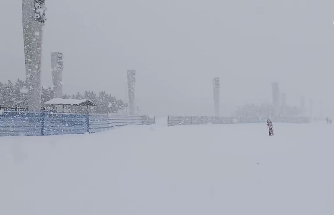 煙臺大學東門附近,冷流雪正在狂暴,宛如北極科考。微博網(wǎng)友視頻截圖